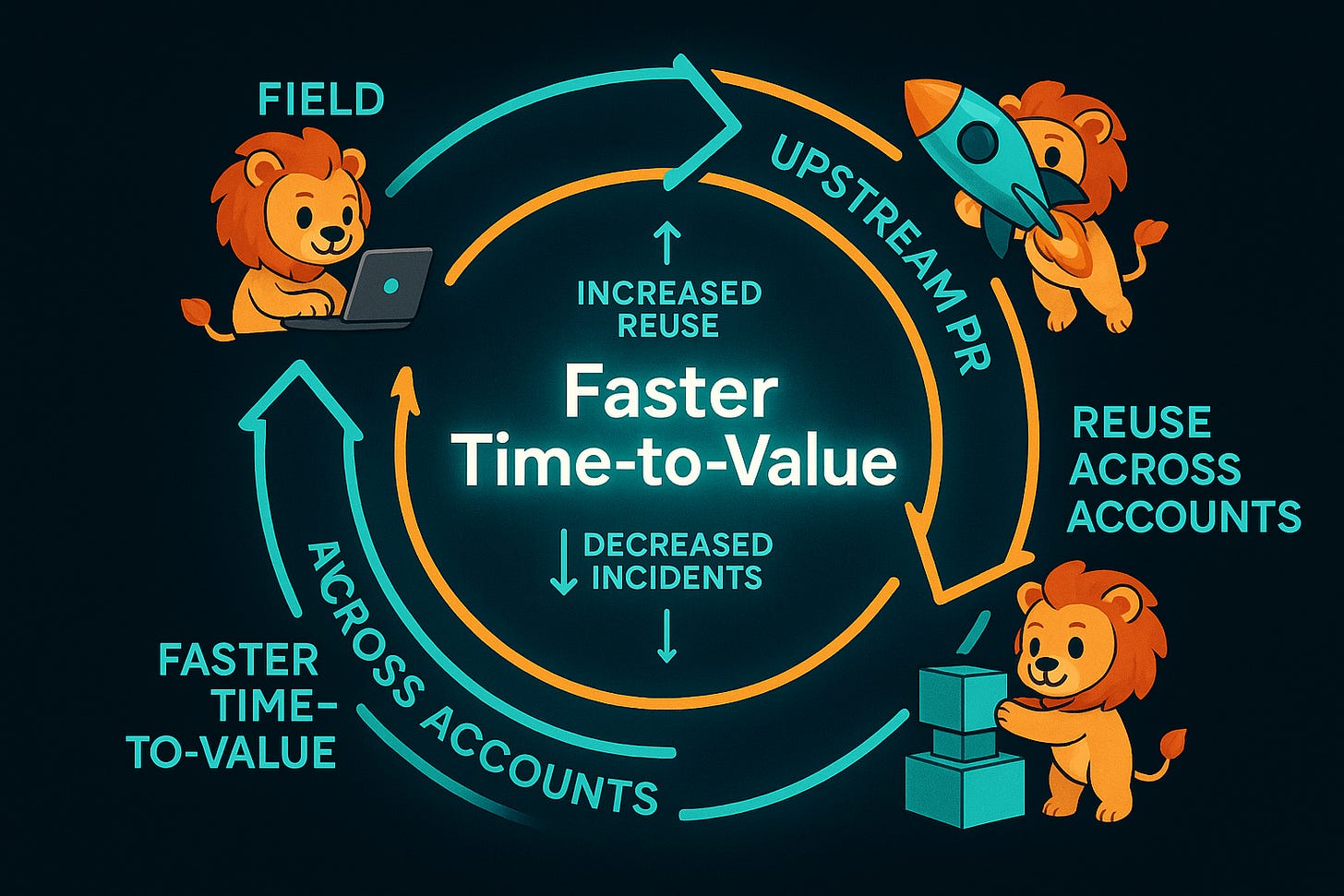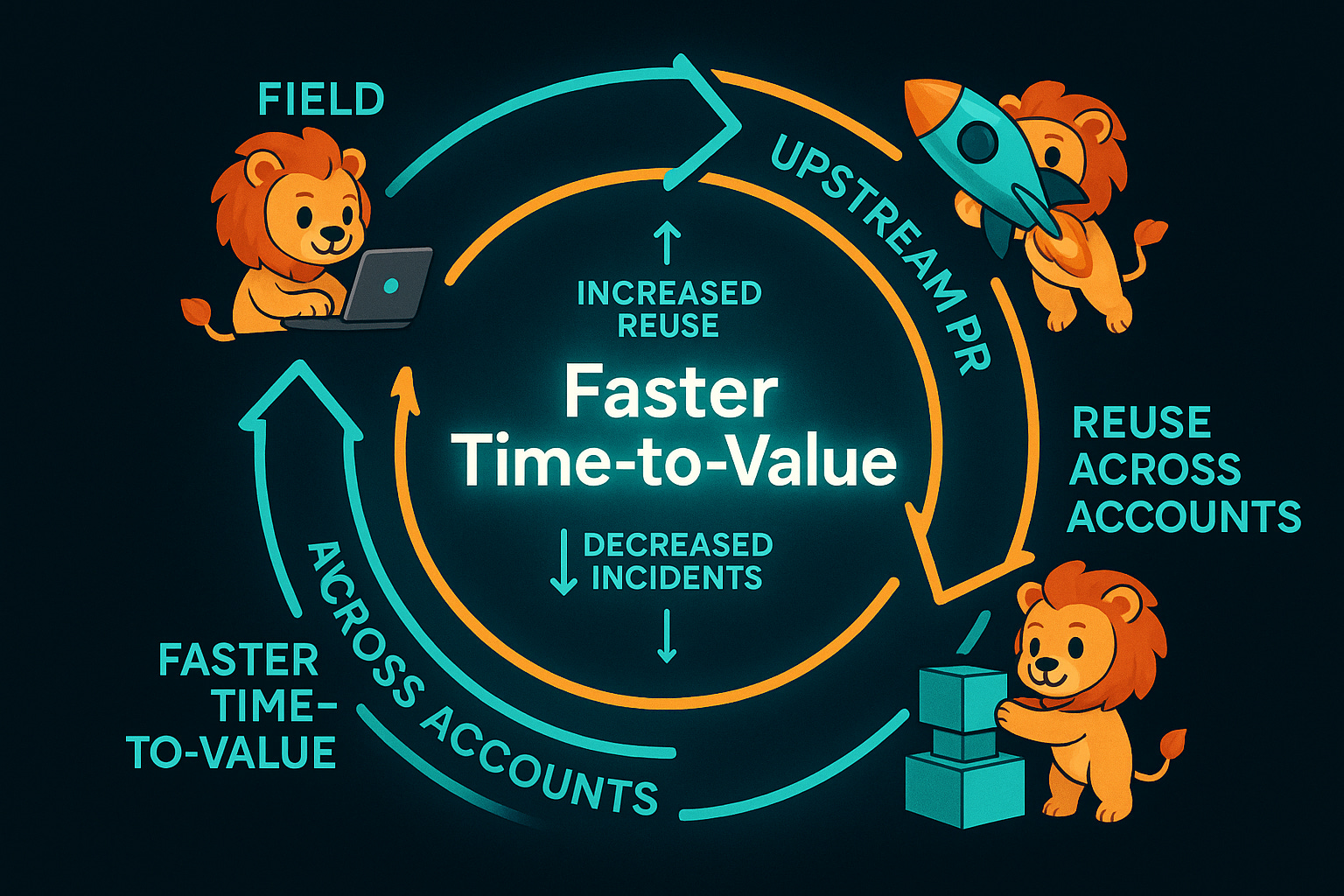 Outcomes: reduced time‑to‑value and time‑to‑first‑PR; higher share of field‑originated product changes shipped per release; fewer critical incidents after rollout.
