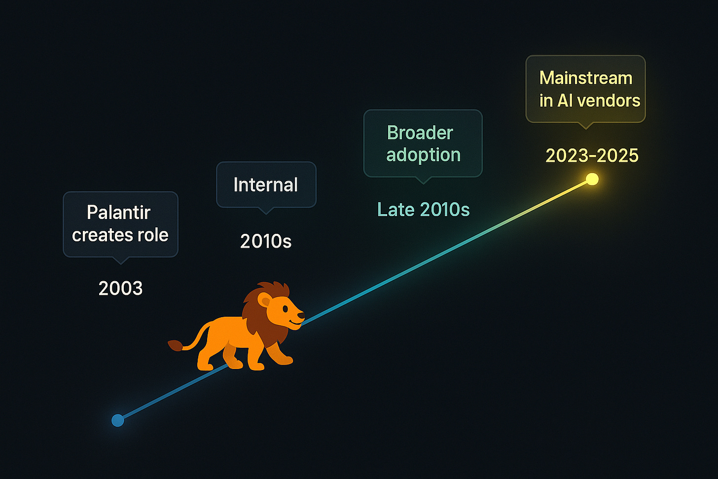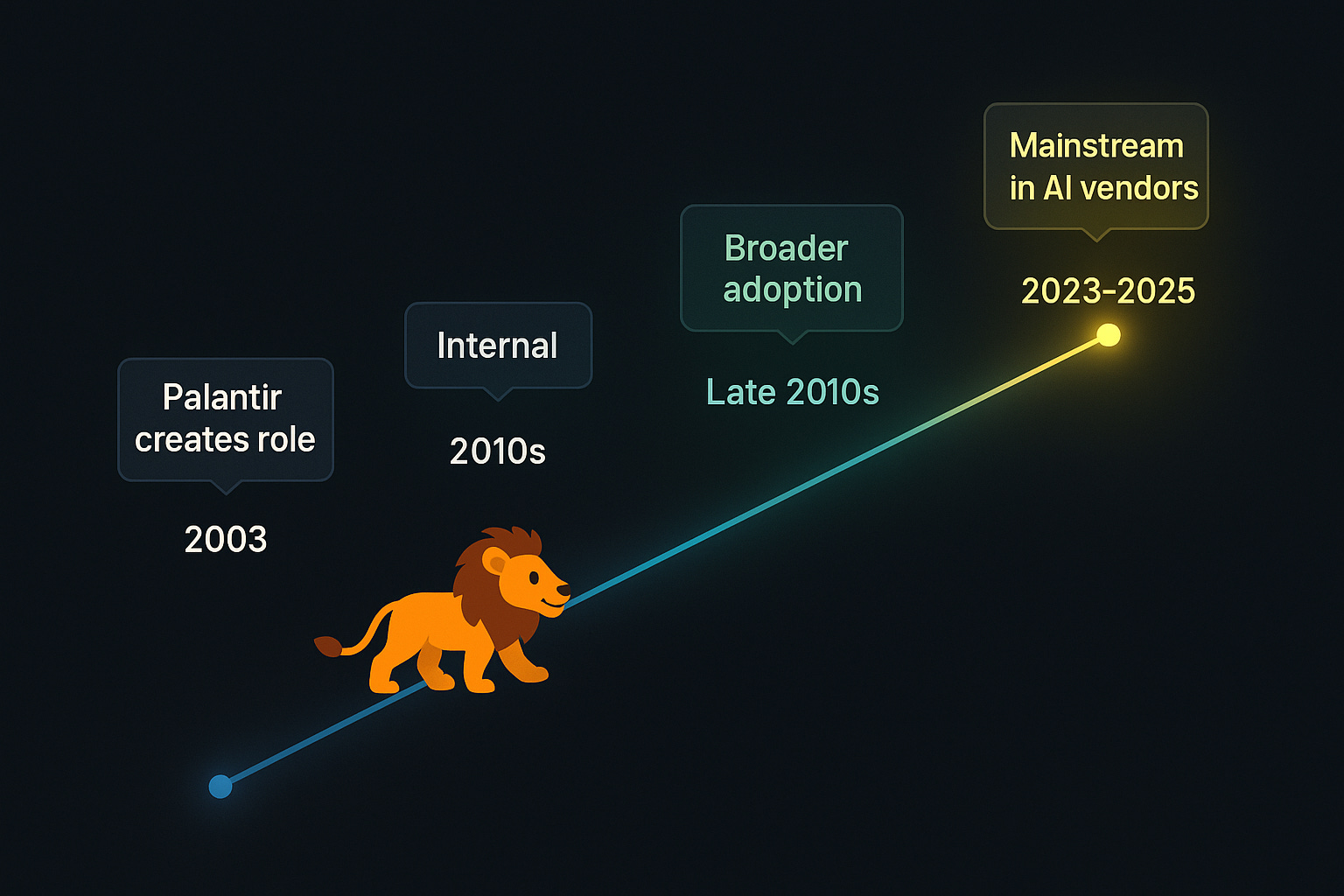 Late 2010s: Scale AI, C3.ai, and Databricks adopt similar roles, seeing value in embedding engineers for complex enterprise deployments.